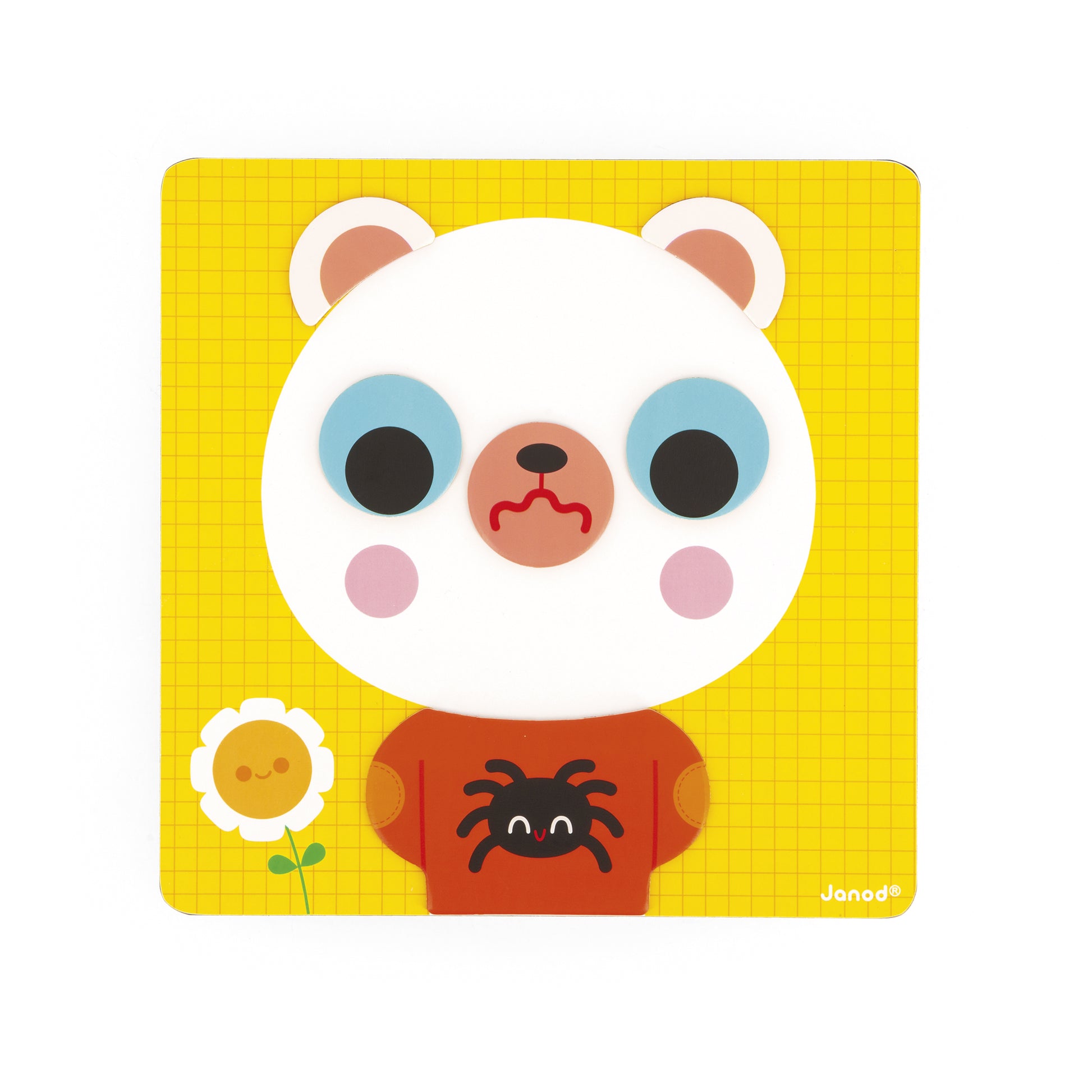Gracias a este juguete, su hijo(a) aprenderá a identificar 7 emociones (alegría, amor, ira...), que podrá reproducir con las tarjetas. De este modo, podrá ponerles un nombre y expresarlas.
