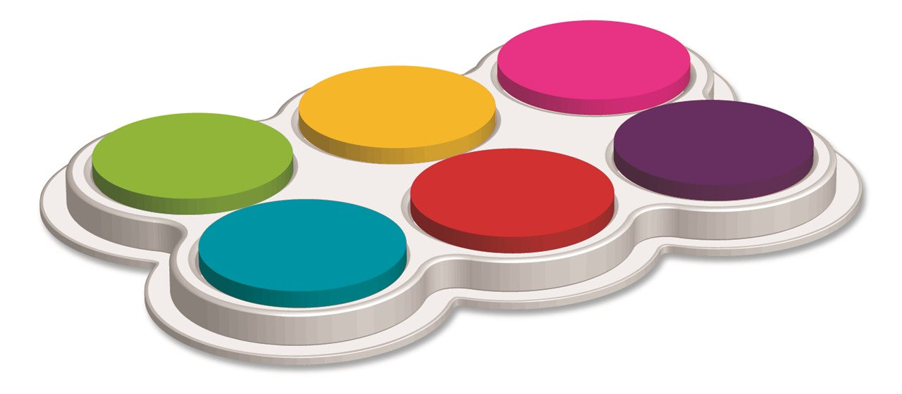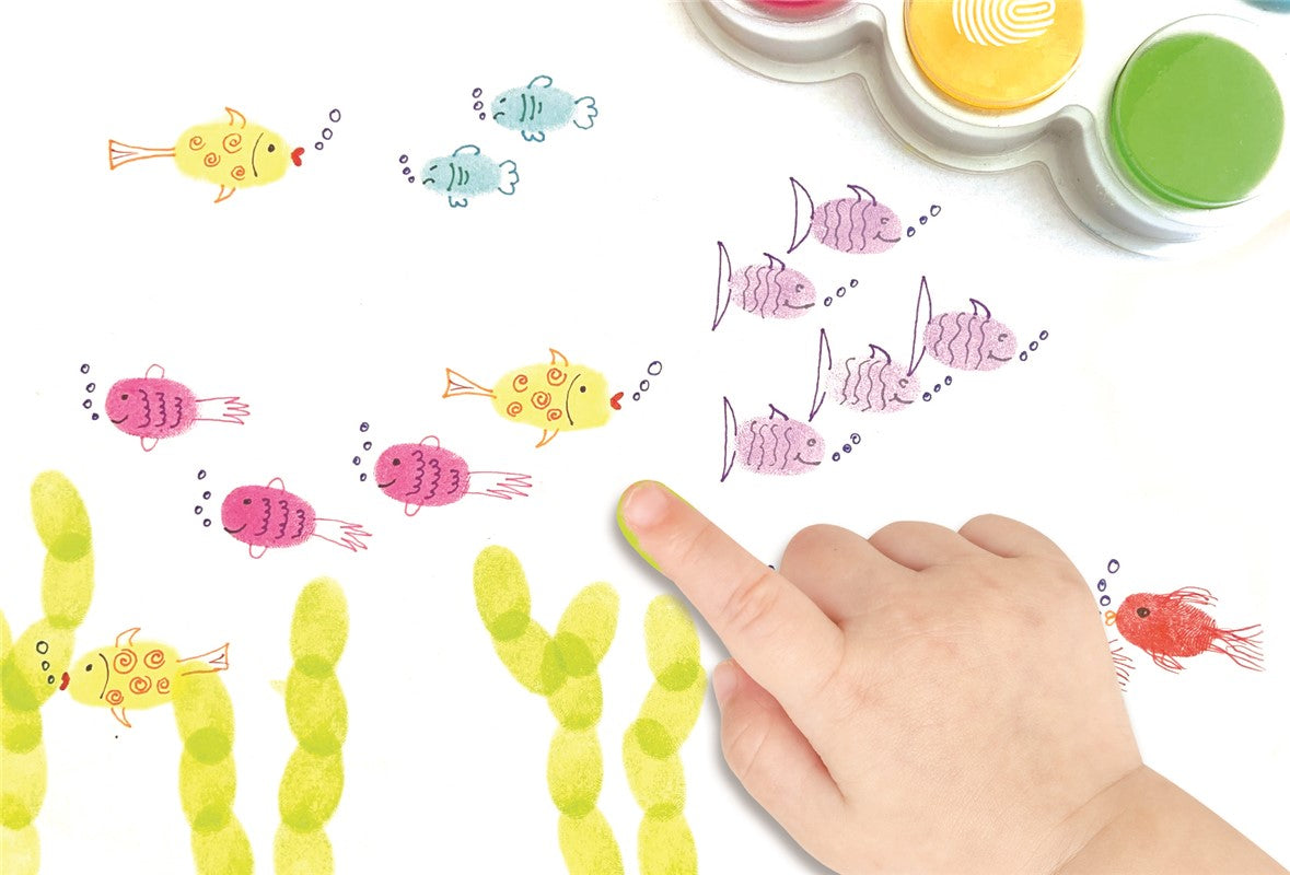 Contiene 6 almohadillas de colores con la tinta para pintar con los dedos lavable al agua.
