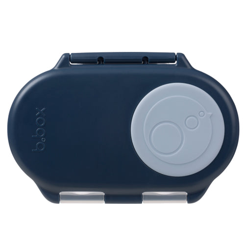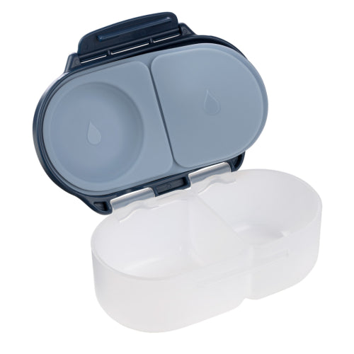 Con la cajita snack de B.Box, la hora de la merienda es mucho más fácil. La opción perfecta para raciones más pequeñas, para el colegio, el parque, una excursión, una tarde de compras, etc. El compartimento flexible para fruta permite transportar la fruta enteras, sin necesidad de cortarla. Los dos compartimentos cuentan con la protección a prueba de fugas de la almohadilla de silicona, por lo que se pueden transportar snacks húmedos, como puré, yogures, raciones de comida con salsa, con total tranquilidad. El clip de fácil apertura y cierre es lo suficientemente grande para las manos y los dedos de los más pequeños y la almohadilla flexible es extraíbles para una limpieza fácil e higiénica. Fabricado en PP y silicona.